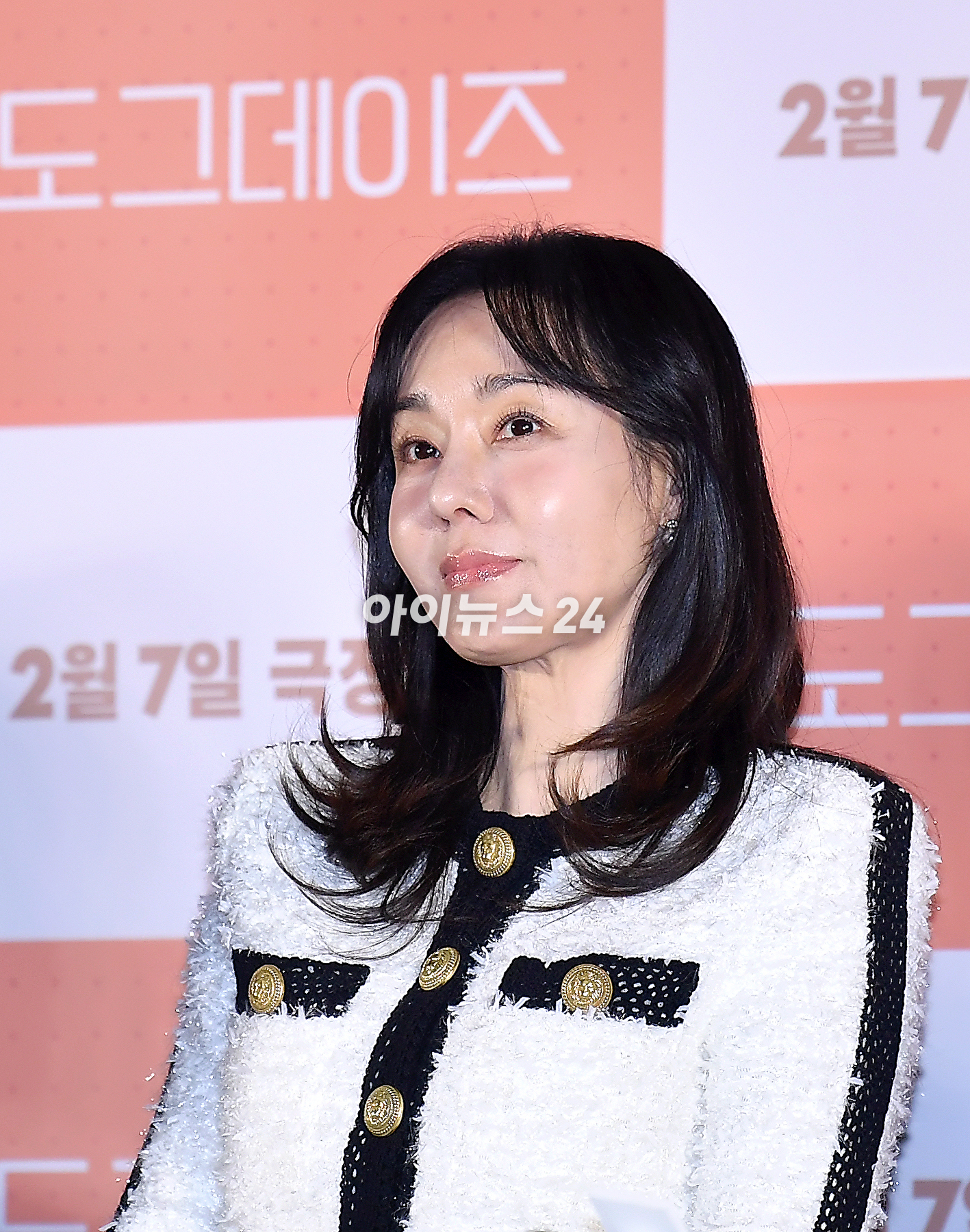 배우 김윤진이 24일 오후 서울 CGV 용산아이파크몰에서 열린 영화 '도그데이즈'(감독 김덕민) 언론시사회에서 포토타임을 갖고 있다.
