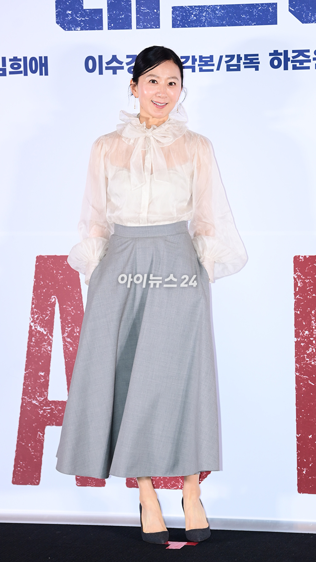 배우 김희애가 29일 오후 서울 강남구 삼성동 메가박스 코엑스에서 열린 영화 '데드맨'(감독 하준원) 언론시사회에 참석하고 있다.