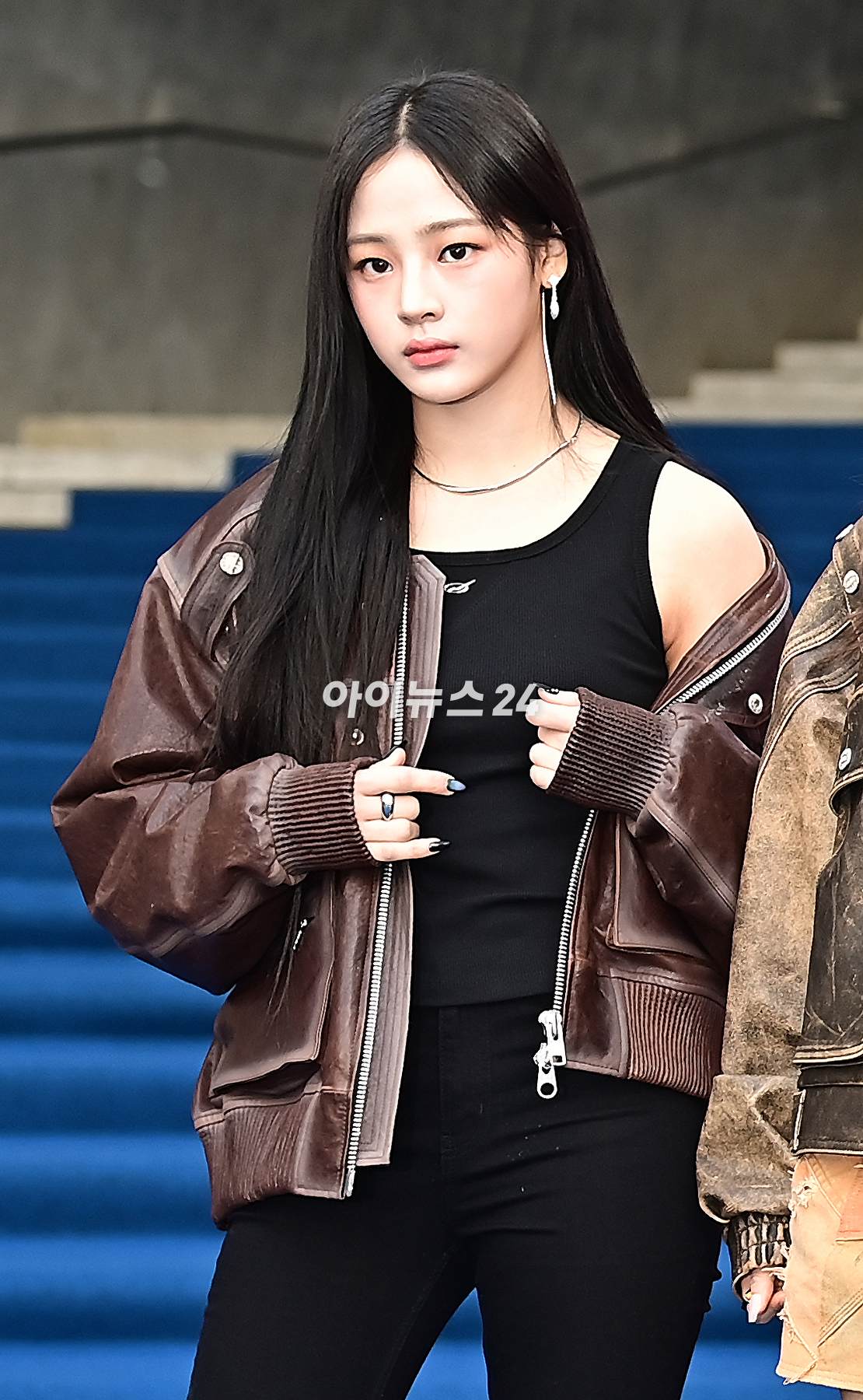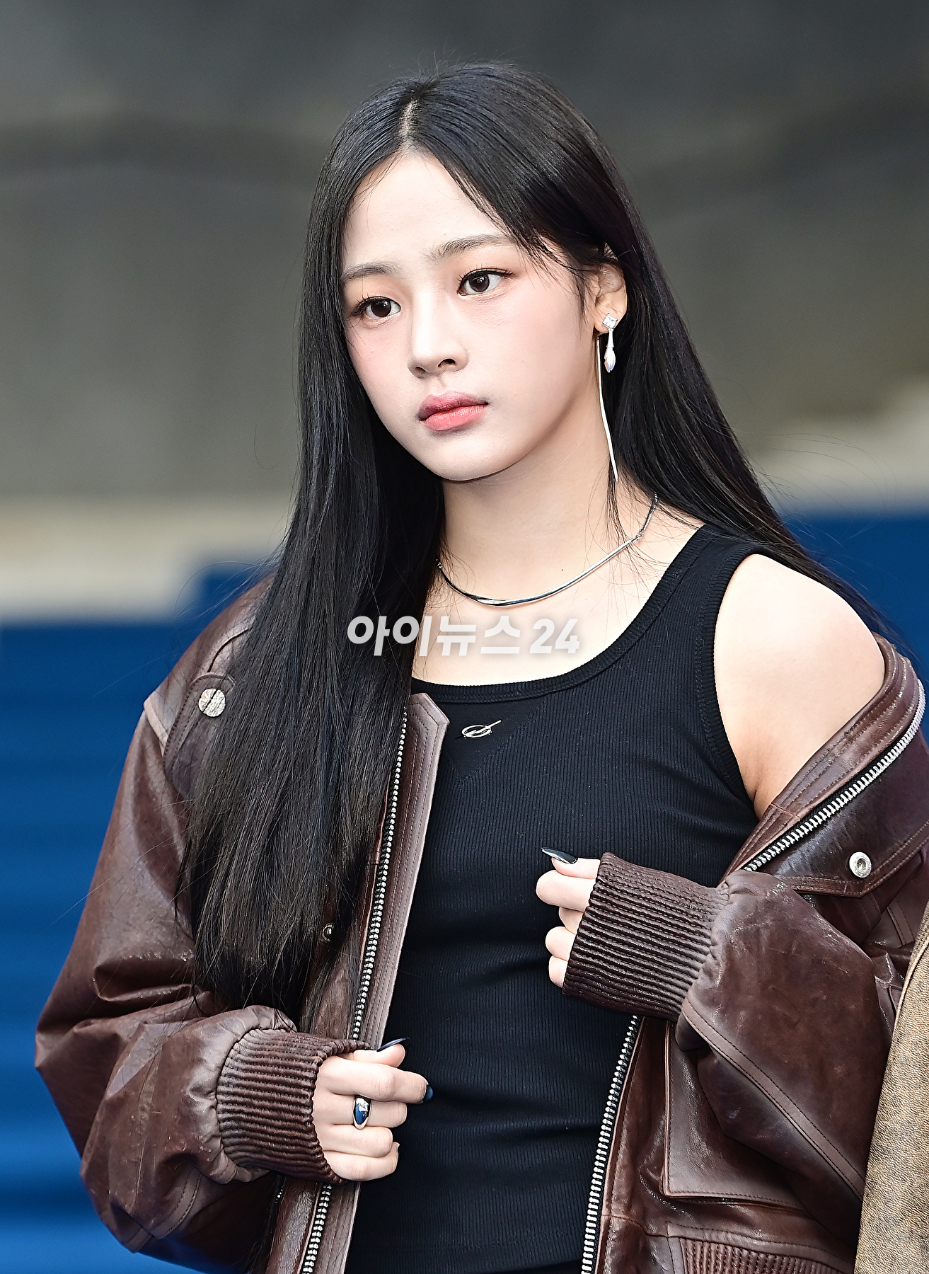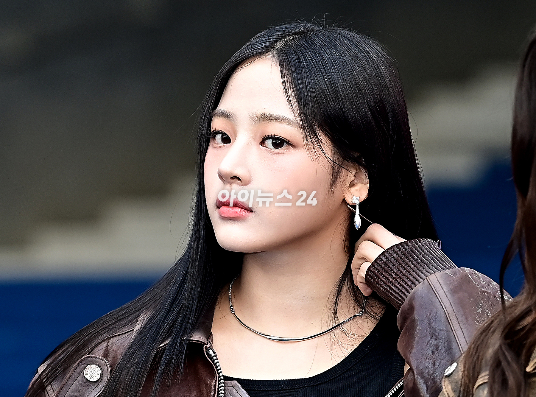 뉴진스 민지가 1일 오후 서울 중구 동대문디자인플라자에서 열린 2024 가을/겨울(F/W) 서울패션위크 박소영 디자이너의 '줄라이칼럼'에 참석해 포토타임을 갖고 있다. [사진=곽영래 기자]