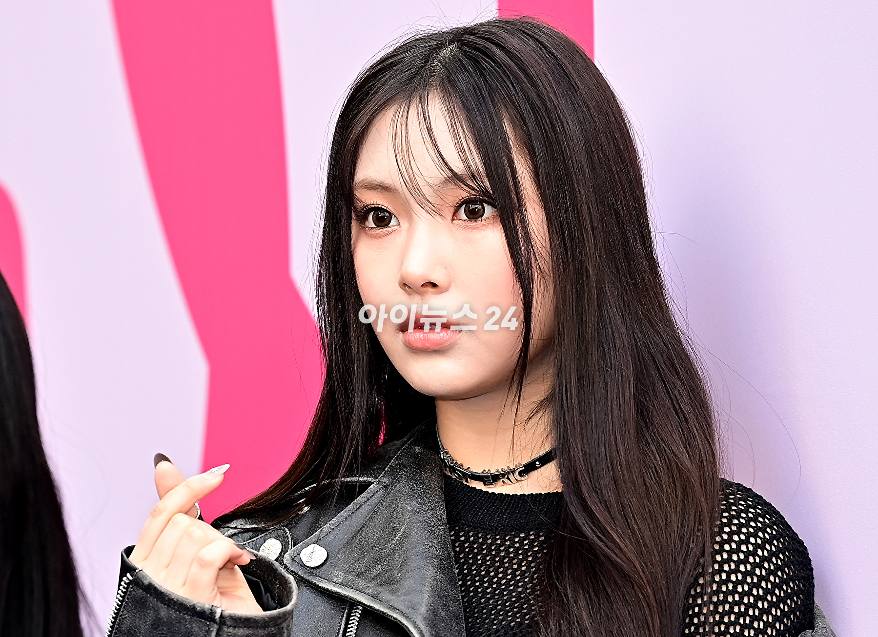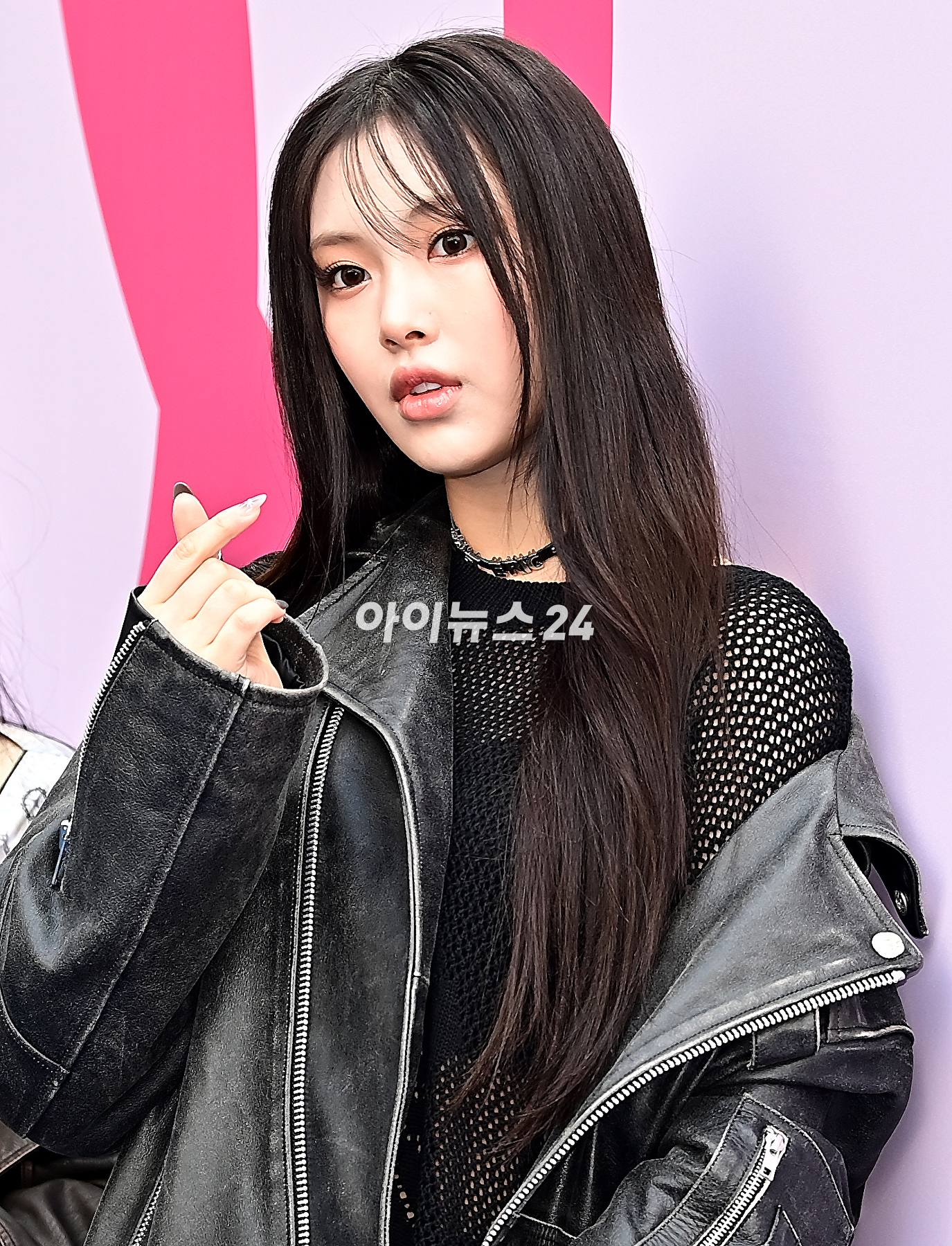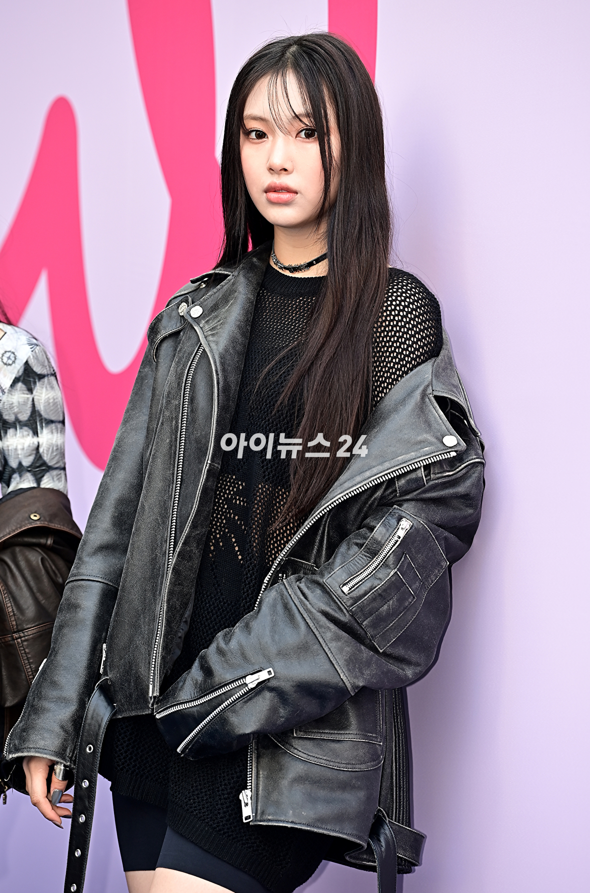 뉴진스 혜인이 1일 오후 서울 중구 동대문디자인플라자에서 열린 2024 가을/겨울(F/W) 서울패션위크 박소영 디자이너의 '줄라이칼럼'에 참석해 포토타임을 갖고 있다.