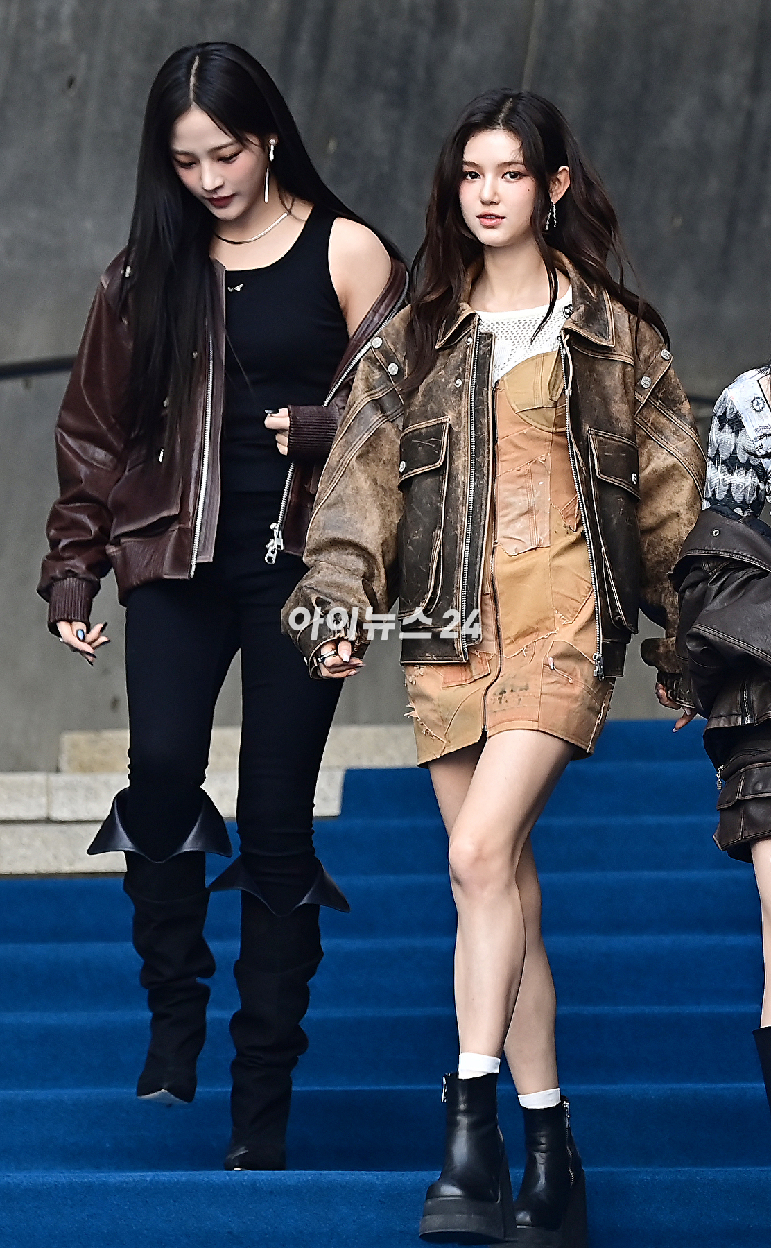 뉴진스 민지, 다니엘이 1일 오후 서울 중구 동대문디자인플라자에서 열린 2024 가을/겨울(F/W) 서울패션위크 박소영 디자이너의 '줄라이칼럼'에 참석해 포토타임을 갖고 있다.