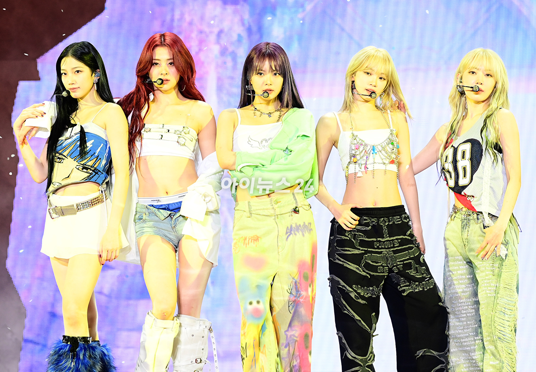 그룹 르세라핌이 19일 오후 서울시 성북구 안암동 고려대학교 화정체육관에서 열린 르세라핌(LE SSERAFIM) 미니 3집 '이지(EASY)' 발매 기념 쇼케이스에서 수곡 'Swan Song' 무대를 선보이고 있다.