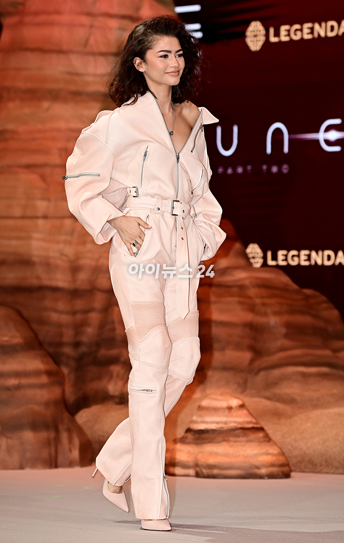 배우 젠데이아 콜먼이 21일 오후 서울 여의도 콘래드서울호텔에서 열린 영화 '듄: 파트2(드니 빌뇌브 감독)' 내한 프레스 컨퍼런스에서 기념촬영을 하고 있다.