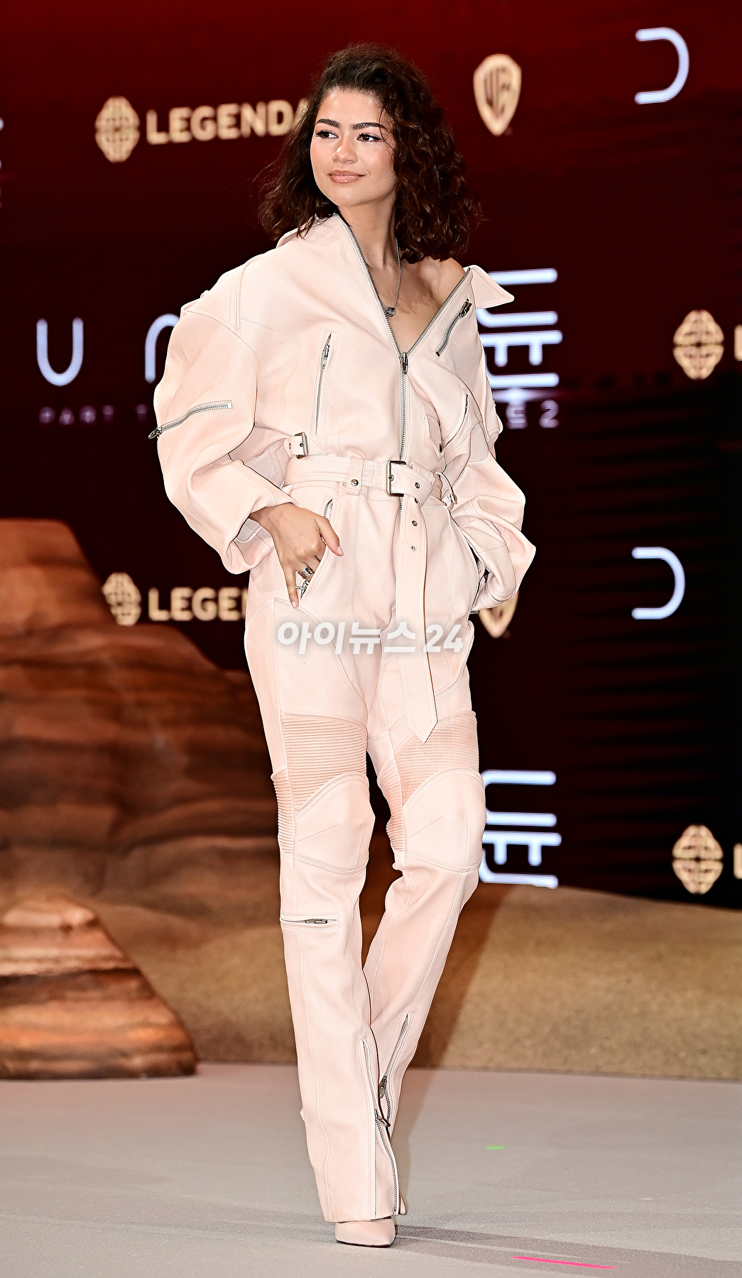 배우 젠데이아 콜먼이 21일 오후 서울 여의도 콘래드서울호텔에서 열린 영화 '듄: 파트2(드니 빌뇌브 감독)' 내한 프레스 컨퍼런스에서 기념촬영을 하고 있다.