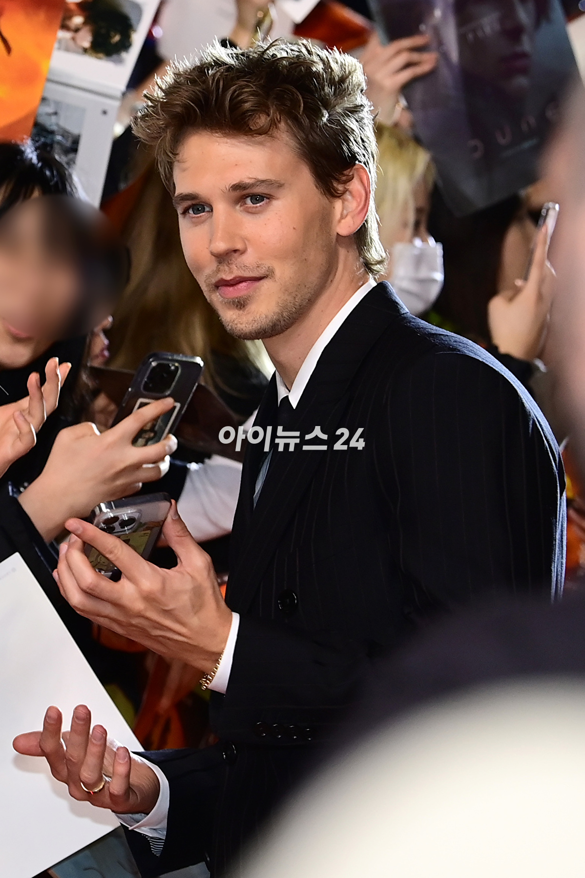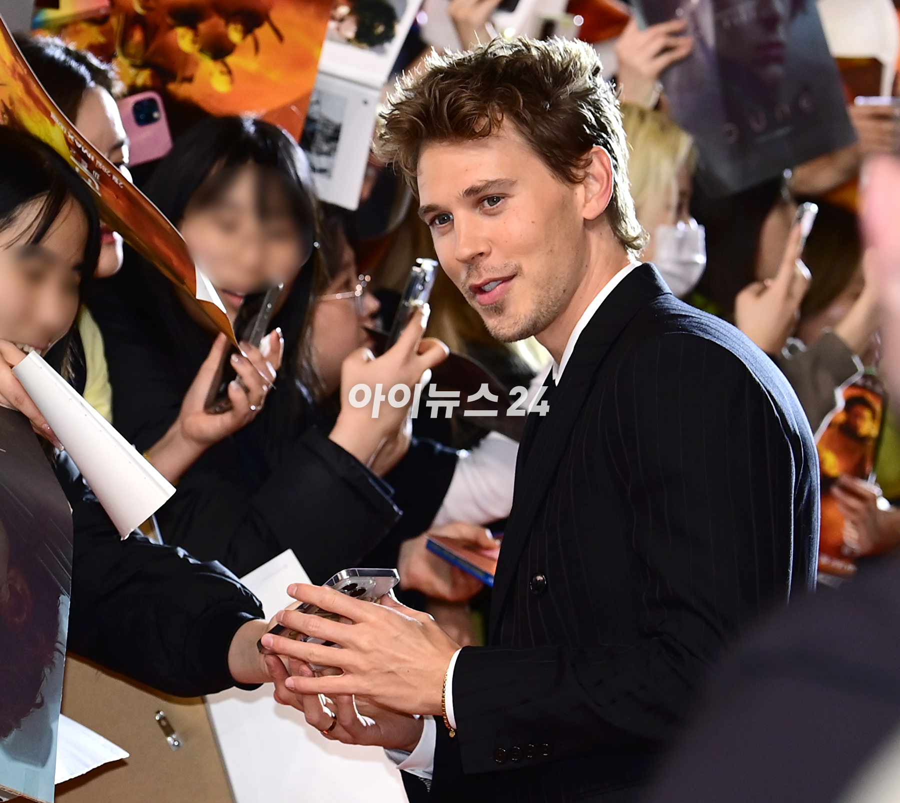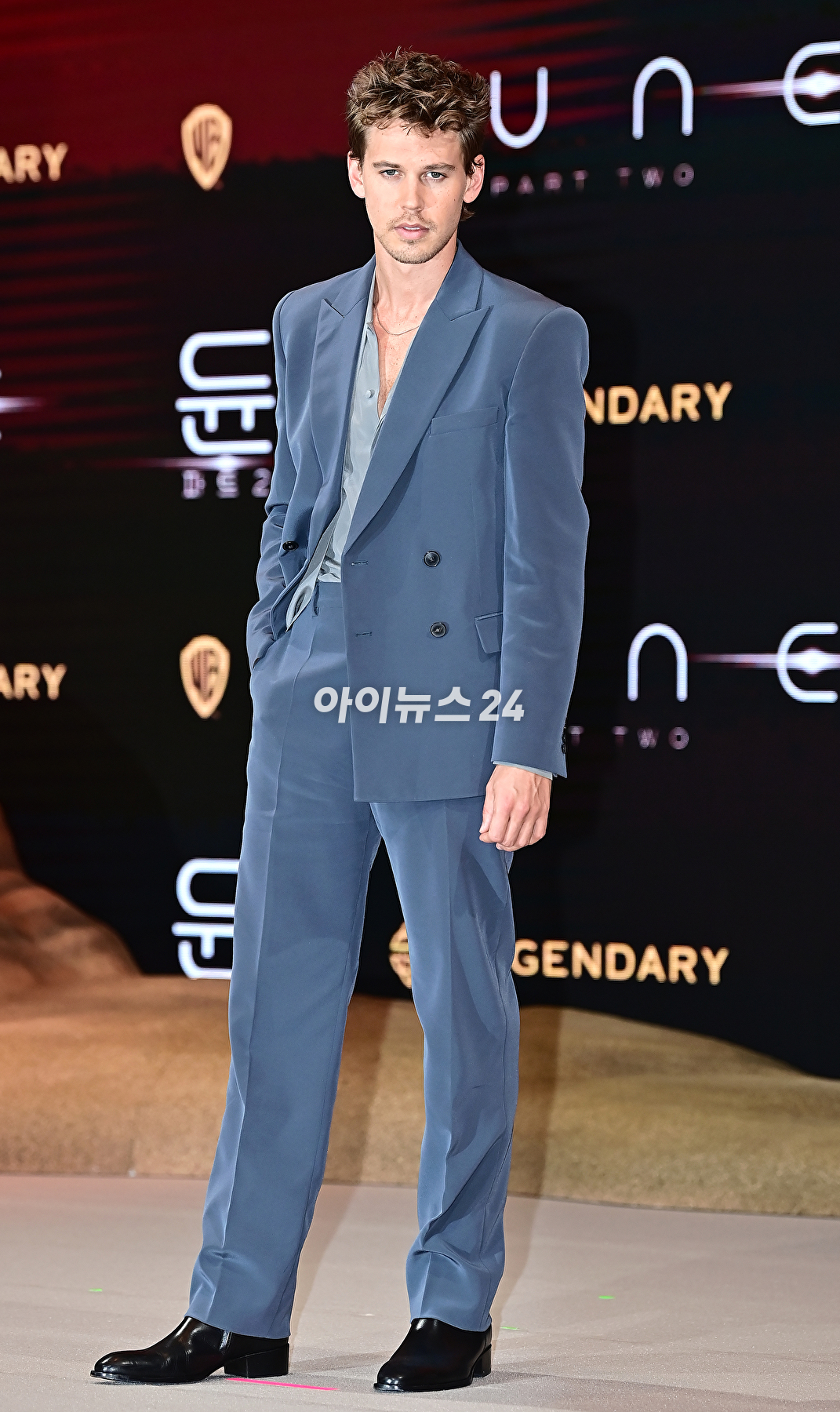 배우 오스틴 버틀러가 22일 오후 서울 영등포구 타임스퀘어에서 진행된 영화 '듄: 파트2' 내한 레드카펫 행사에 참석하고 있다.